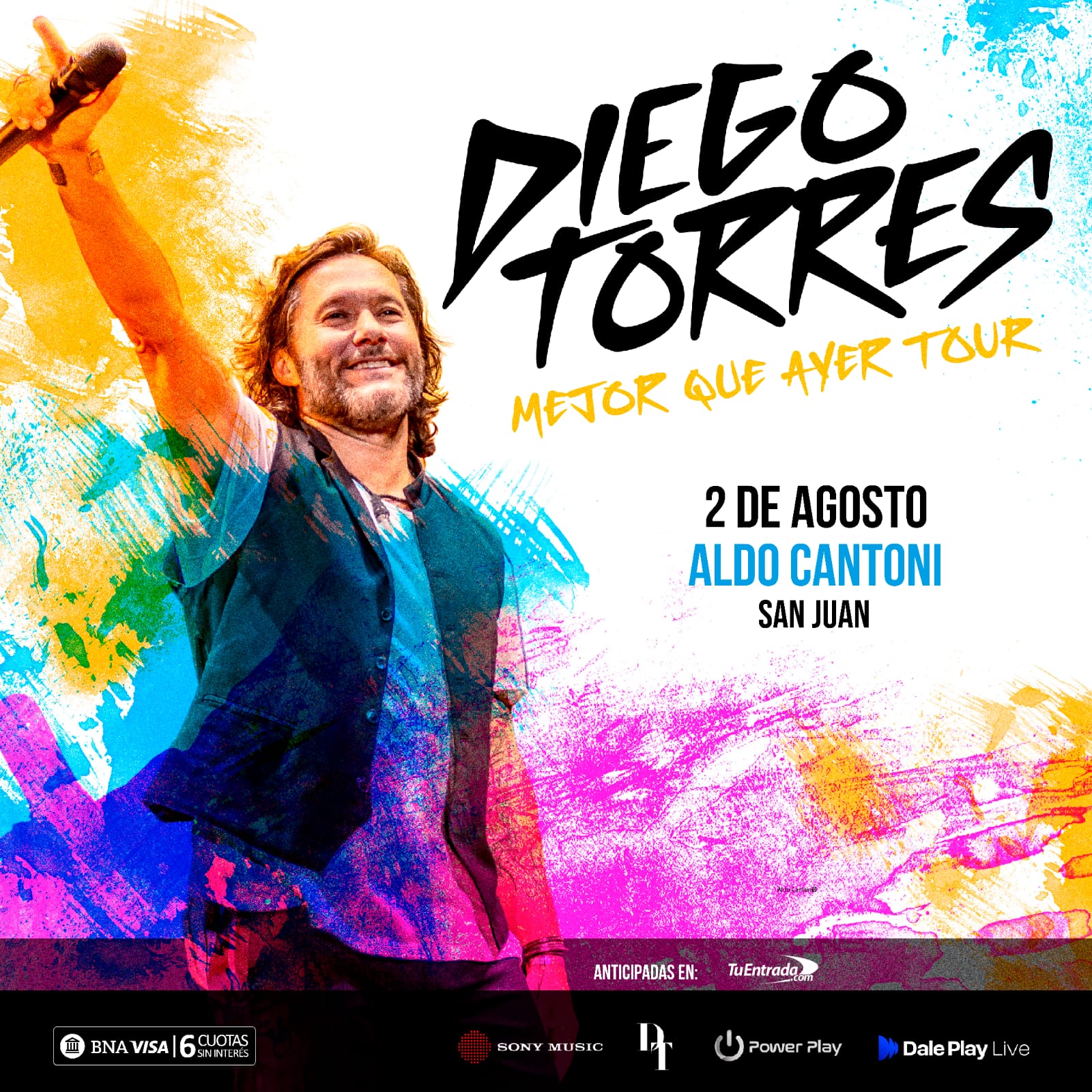 Este próximo sábado 2 de agosto, el Estadio Aldo Cantoni, recibe a nuestro artista consagrado Diego Torres, las entradas ya están a la venta a través de www.tuentrada.com . Será una noche inolvidable poder revivir los clásicos y cantar junto a Diego los nuevos temas, como ya es costumbre nos sorprenderá pero este «MEJOR QUE AYER TOUR» llega a la provincia cargado de emociones. Las puertas del Cantoni se abrirán a las 20hrs para que todo sea ordenado y de la mejor manera.
