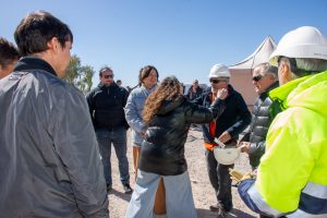 Los recibió, el Presidente del directorio de Caleras San Juan, Daniel Van Lierde junto al gerente general, Raúl Cabanay, quien les contó la transformación de la empresa que se inicia en 2016 con un Plan Maestro que apuntaba a incorporar tecnología moderna materializada en cuatro hornos de alta eficiencia térmica y baja huella de carbono. Así, explicó, la empresa pasó de producir cerca de cien mil toneladas, a más de 300 mil toneladas de cal en los últimos años, multiplicando por tres los niveles de empleo genuino, un 90 por ciento de ellos son trabajadores de Cienaguita, Divisadero, Pedernal y Los Berros, dijo.