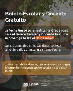 El Ministerio de Gobierno reafirma la importancia de la Credencial Única Escolar y Docente como herramienta fundamental para la identificación y seguridad dentro de las instituciones educativas de la provincia. Y aclara que, en el caso de nivel inicial y primario y secundario no será obligatorio siempre y cuando el alumno viaje con el guardapolvo o uniforme de la institución.