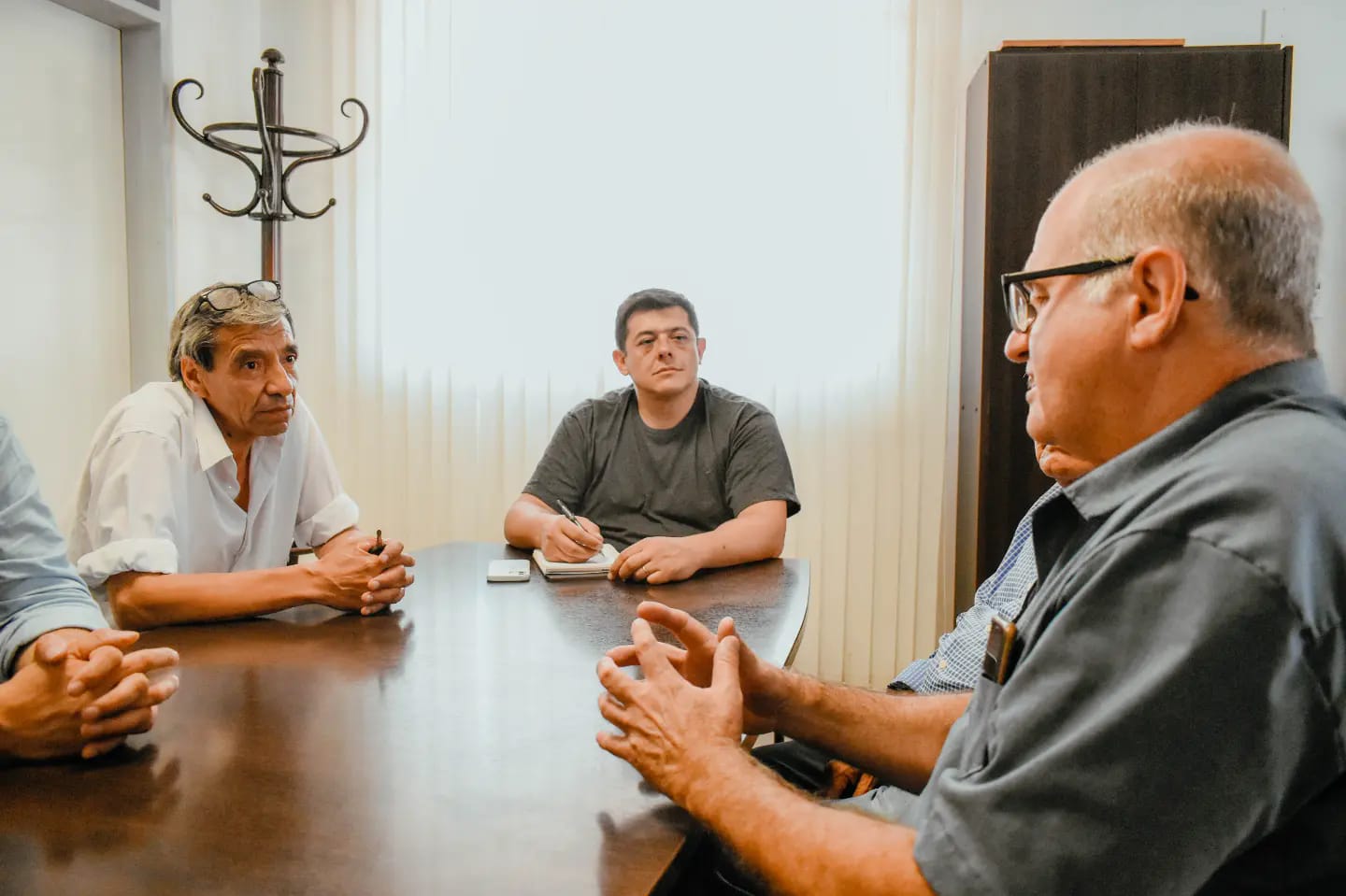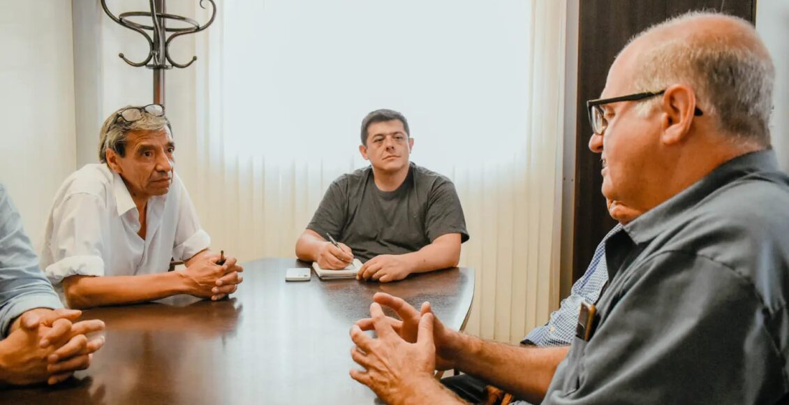 El intendente Matías Espejo lideró una reunión clave con destacadas autoridades, incluyendo al director General de Hidráulica, Luis Kulichevsky, el secretario de Recursos Hídricos y Energías Renovables, David Devia, el consejero de la Tercera Zona Bajo Riego, Atilio Garzón, y el responsable de Hidráulica en Jáchal, Danilo Vera.