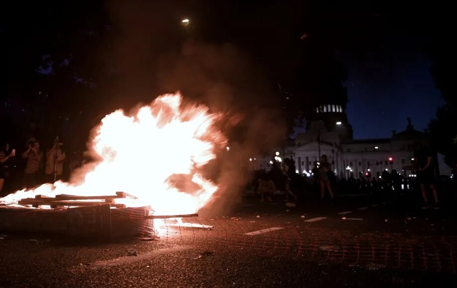 Tras la aprobación en general de la Ley Ómnibus, se viven momentos de tensión frente al Congreso, donde organizaciones de izquierda se manifiestan en rechazo al proyecto de oficialista que se votó en la Cámara de Diputados. El martes que viene se votará la ley en particular, artículo por artículo.