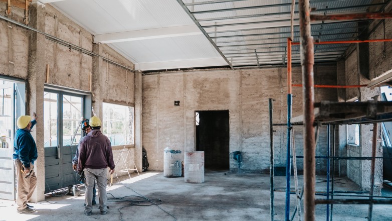 La construcción del edificio en La Bebida presenta un avance superior al 60 %. Continúan los trabajos en pisos, sanitarios, aberturas y torre de tanque.