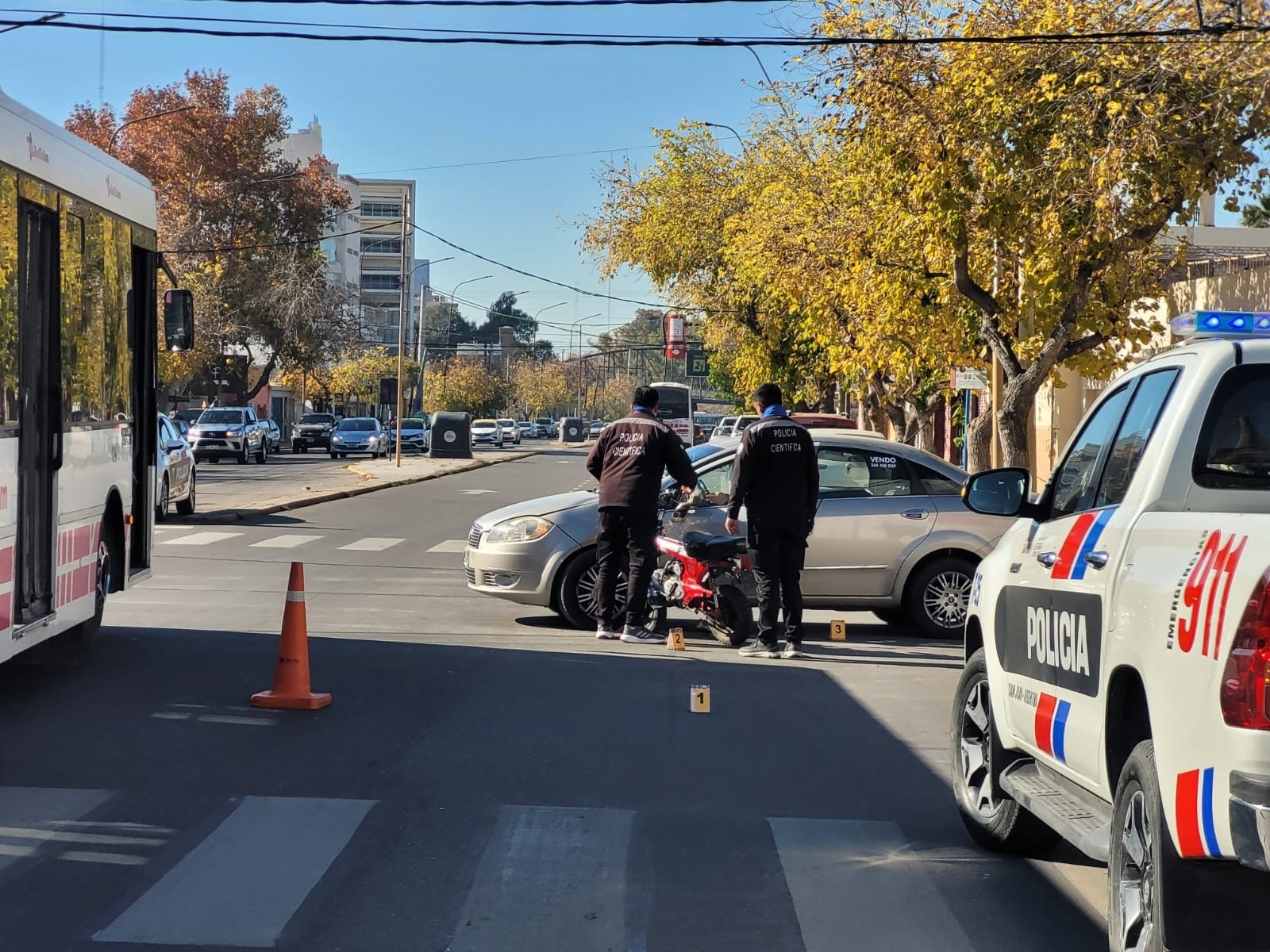 Este jueves por la mañana, un motociclista fue trasladado al hospital luego de un fuerte choque con un automóvil en la intersección de Ignacio de la Roza y Segundino Navarro, cerca del Colegio Fray Mamerto Esquiú, en Capital.