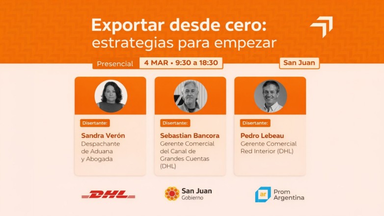 El seminario contará además con un espacio destinado a los servicios de promoción de DHL para sectores clave como el vino y el aceite de oliva sanjuaninos, y culminará con un diagnóstico exportador personalizado y un taller práctico de simulación.